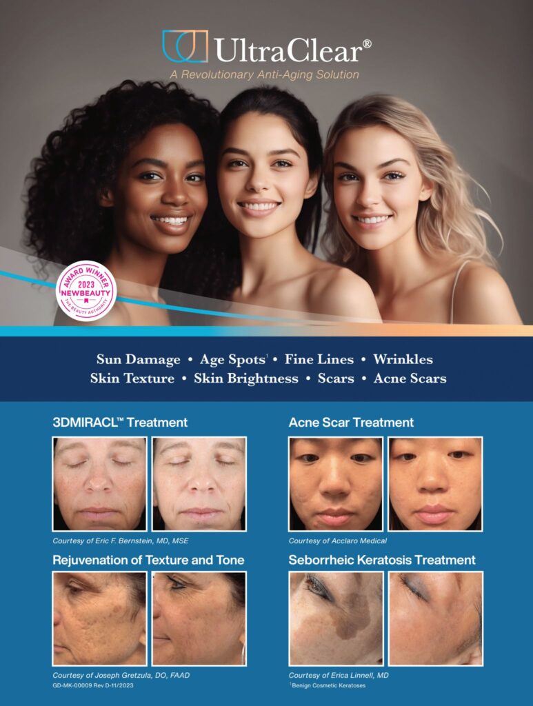 Treatments are quick and most patients experience little to no discomfort. Downtime can be minimal, and you’ll see visible improvements in skin clarity, smoothness, and radiance. UltraClear® is also safe for all skin types, including skin of color.